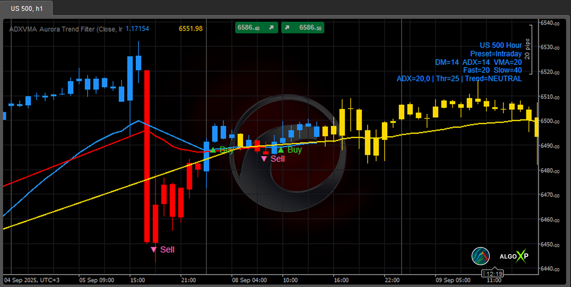 - Intraday: VMA=20 · ADX=14 · ADX-Thr=25 · NeutralSlope=0.06 · Link=VMA→2×VMA