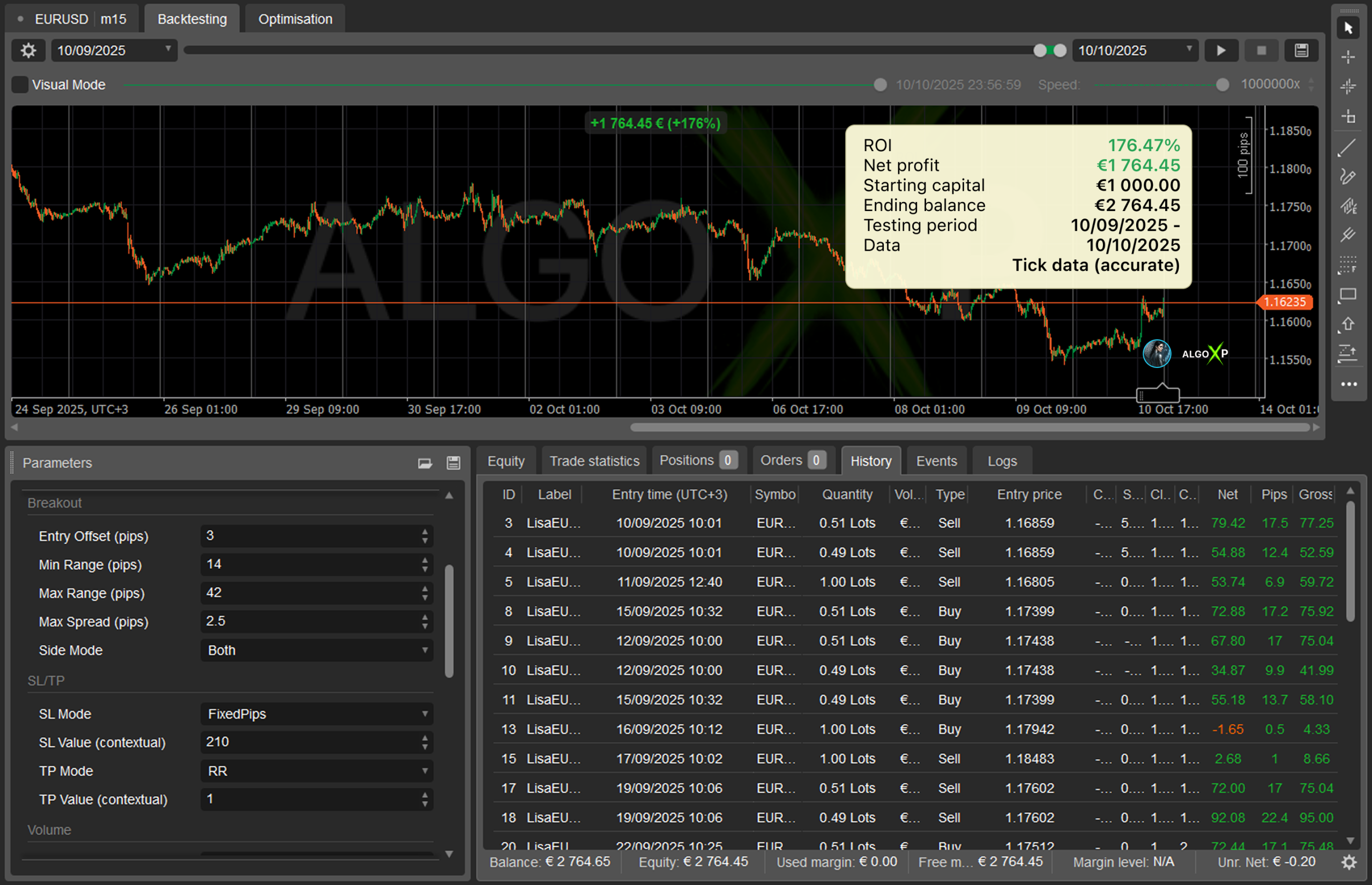 Lisa EURUSD Breakout is ideal for traders who want a transparent, session-driven breakout system with simple SL/TP logic and sensible guardrails—without grids or martingale.