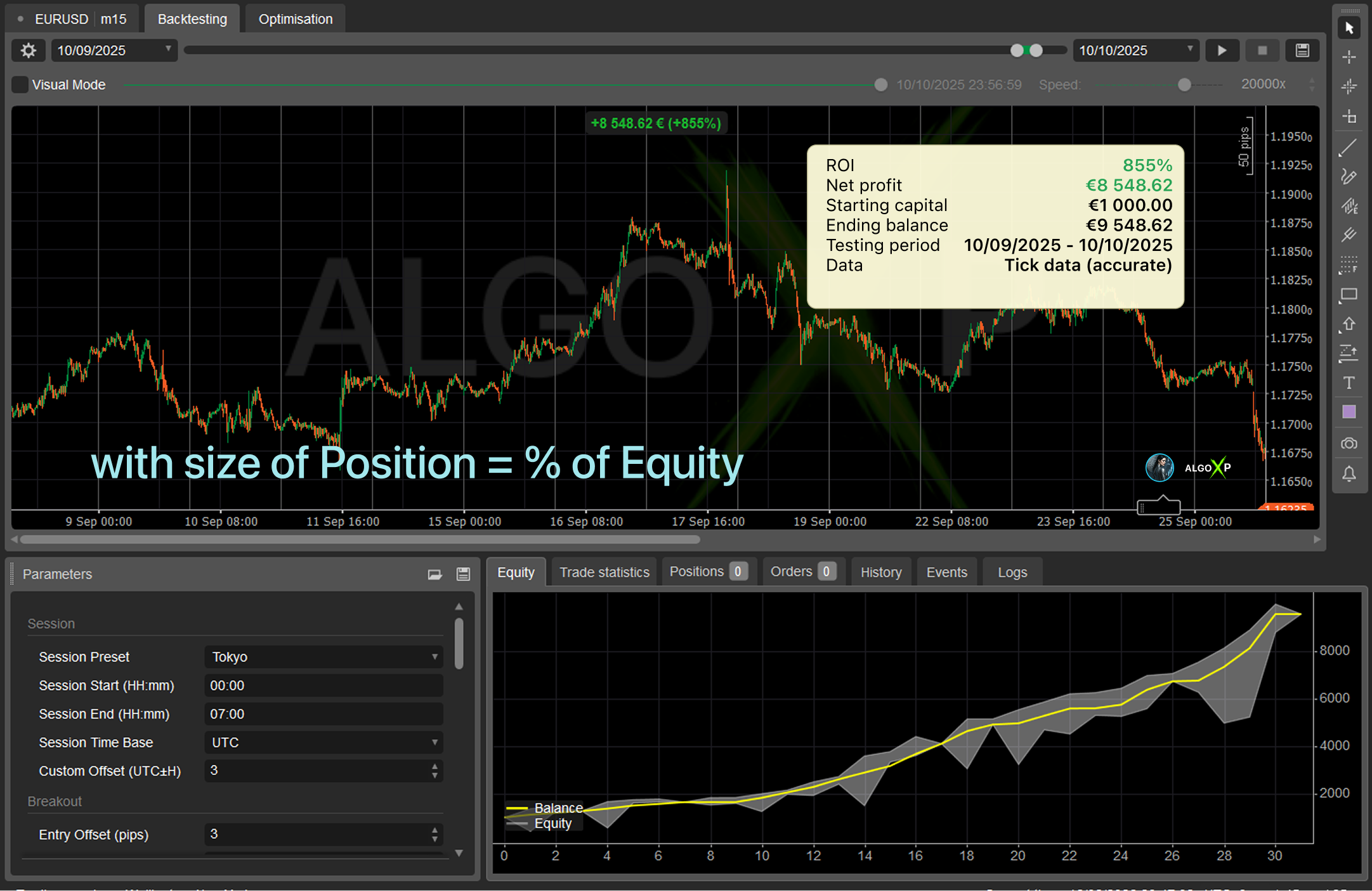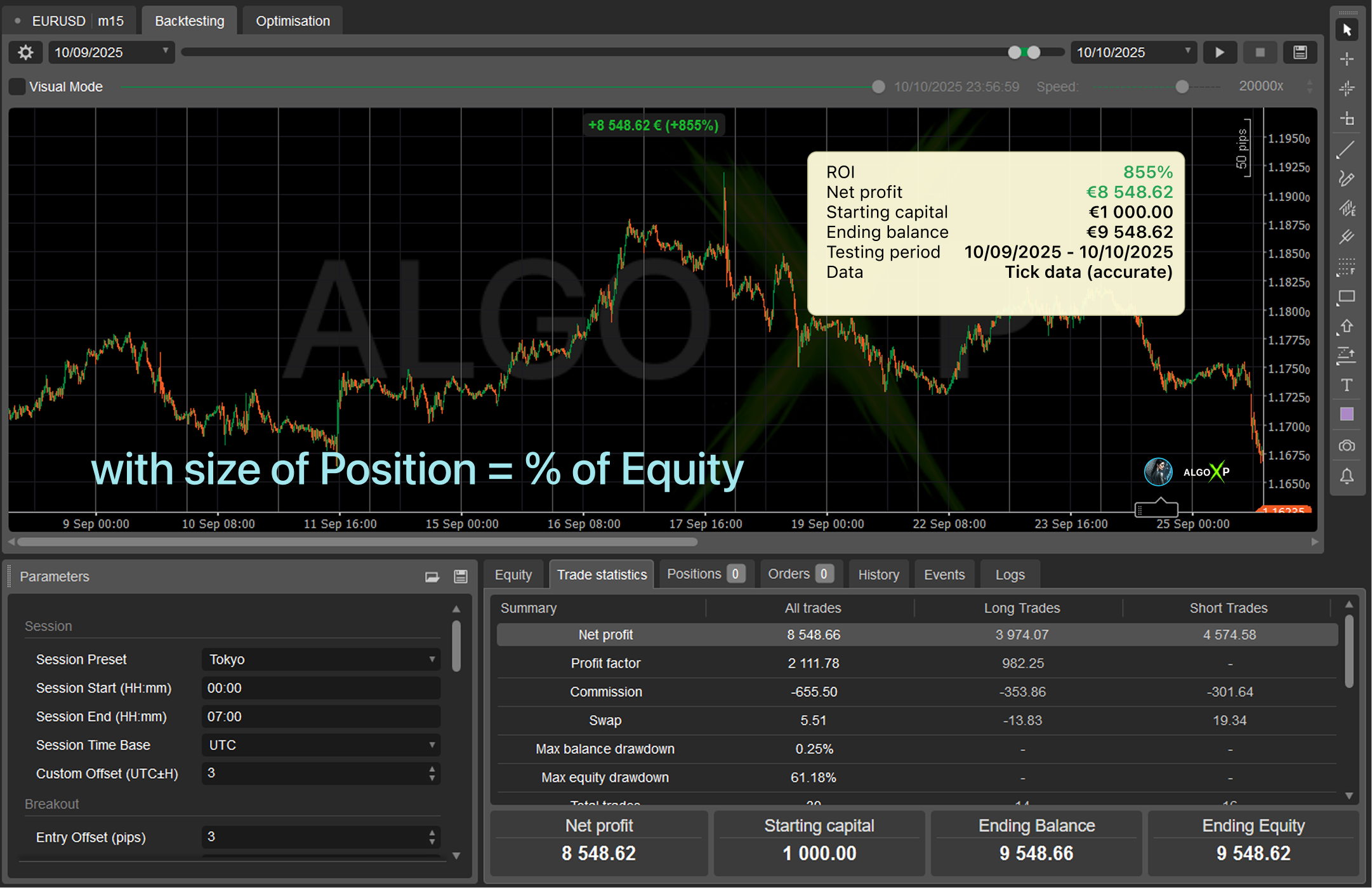Trading involves risk. Backtests/optimizations show potential, not a guarantee. Real results depend on broker conditions (spread, commission, execution, leverage) and your settings. Always forward-test and optimize on tick data with your broker before going live.
