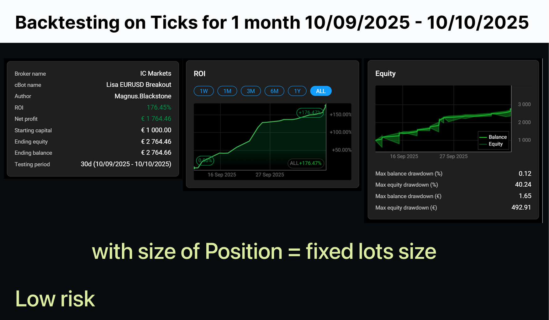 Lisa EURUSD Breakout is a purpose-built cTrader robot for EURUSD that trades a classic session box breakout with disciplined risk controls.
